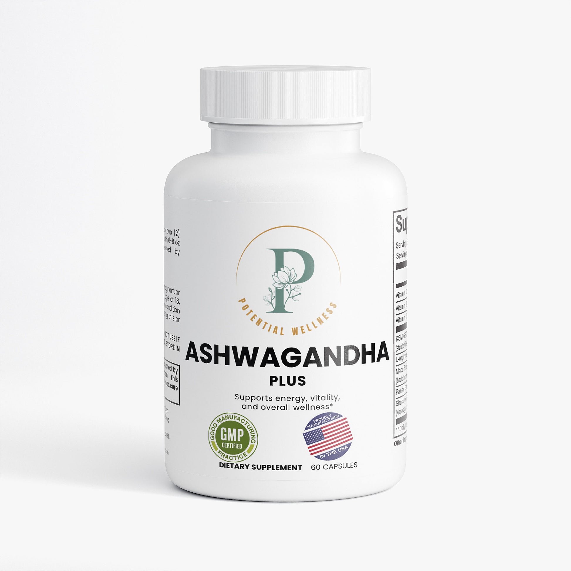 Ashwagandha Plus is a carefully crafted formula combines essential vitamins with traditional adaptogens to help support everyday energy and vitality. Vitamin D3, B6, and B12 provide key nutrients that contribute to normal metabolism, healthy nervous system function, and overall wellness. L-Arginine helps support healthy circulation, while Maca and Panax Ginseng offer plant-based support for stamina and balance.